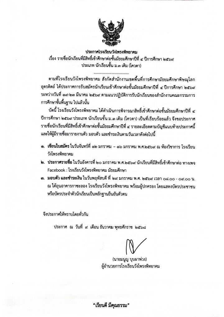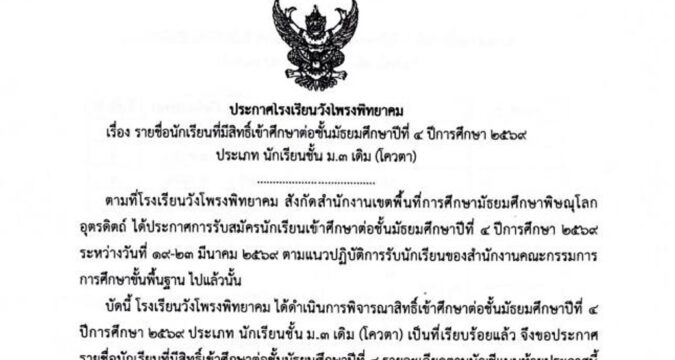 āļāļĢāļ°āļāļēāļĻāđāļĢāļāđāļĢāļĩāļĒāļāļ§āļąāļāđāļāļĢāļāļāļīāļāļĒāļēāļāļĄāđāļĢāļ·āđāļāļāļĢāļēāļĒāļāļ·āđāļāļāļąāļāđāļĢāļĩāļĒāļāļāļĩāđāļĄāļĩāļŠāļīāļāļāļīāđāđāļāđāļēāļĻāļķāļāļĐāļēāļāđāļāļāļąāđāļāļĄāļąāļāļĒāļĄāļĻāļķāļāļĐāļēāļāļĩāļāļĩāđ 4 āļāļĩāļāļēāļĢāļĻāļķāļāļĐāļē 2569 (āļāļĢāļ°āđāļ āļāđāļāļ§āļāļē āļĄ.3 āđāļāļīāļĄ)